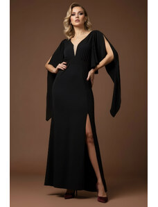 Parizianista φόρεμα maxi με ανοιχτό ντεκολτέ, ιδιαίτερα μανίκια & σκίσιμο - Μαύρο - 002043