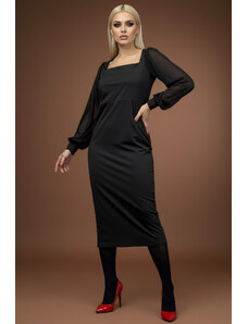 Parizianista φόρεμα midi με τετράγωνο ντεκολτέ & σαρμέζ μανίκια - Μαύρο - 002043