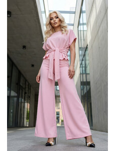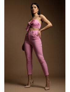 Parizianista Γυναικείο Σετ Μπλούζα Με Κόμπο & Παντελόνι Ίσιας Γραμμής - Ροζ - 018009