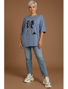 Parizianista plus size μπλούζα κοντομάνικη με τύπωμα μπροστά - Μπλε - 025009