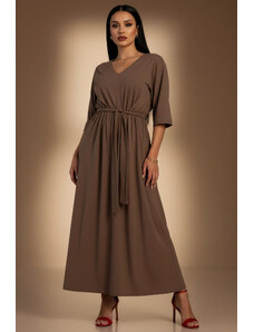 Parizianista plus size φόρεμα κοντομάνικο maxi με V ντεκολτέ & ζώνη - Πούρο - 086049