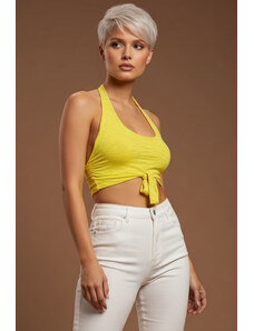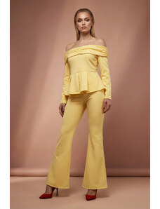 Parizianista Γυναικείο Σετ με Μπλούζα Έξωμη & Παντελόνι - Κίτρινο - 008009