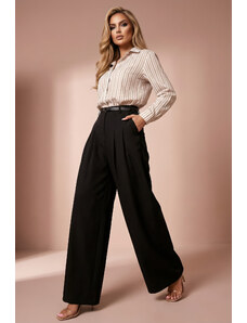 Parizianista Γυναικεία Παντελόνα με Δερμάτινη Ζώνη και Πιέτες - Μαύρο - 002009