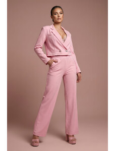 Parizianista Σετ Κοστούμι Φούτερ με Crop Σακάκι & Παντελόνι - Ροζ - 018009