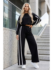 Parizianista Γυναικείο Σετ Φόρμας με Ρίγες στα Πλαϊνά & Ρυθμιζόμενο Τελείωμα - Μαύρο - 002009