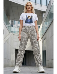 Parizianista Γυναικείο Jean Παντελόνι Animal Print - Λεοπάρ - 017002