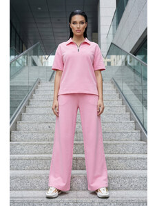 Parizianista Γυναικείο Σετ Φόρμας με Παντελόνι & Κοντομάνικη Μπλούζα - Ροζ - 018009