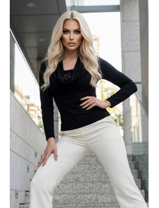 Parizianista Γυναικεία Μακρυμάνικη Μπλούζα Ντραπέ με Δαντέλα - Μαύρο - 002009