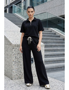 Parizianista Γυναικείο Σετ Φόρμας με Παντελόνι & Κοντομάνικη Μπλούζα - Μαύρο - 002009