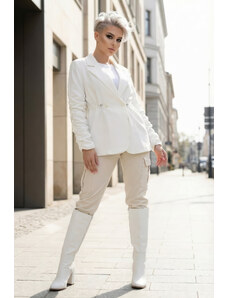 Parizianista Γυναικείο Σακάκι Με Σούρες Στα Μανίκια - Λευκό - 009009