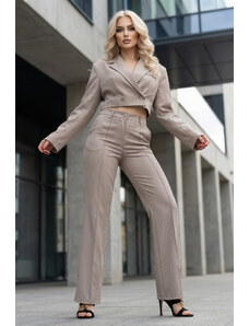 Parizianista Γυναικείο Κοστούμι Σετ Cropped Blazer & Ψηλόμεσο Παντελόνι – Elegant Tailored Suit - Πούρο - 086009