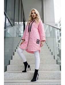 Parizianista Μακρύ Καπιτονέ Μπουφάν με Κουκούλα & Floral Ανάγλυφο Σχέδιο – Oversized Fit - Ροζ - 018009