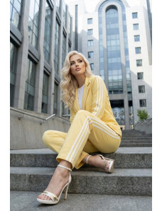 Parizianista Αθλητικό Κοστούμι Γυναικείο Ποντοστόφα με Βάτες & Ρίγες – Σετ Σακάκι & Παντελόνι One Size - Κίτρινο - 008009