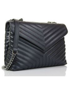 Passaggio Leather Bag Τσάντα Ώμου-Χιαστή Καπιτονέ Από Γνήσιο Δέρμα (Italy) Jumbo Size -Μπλε