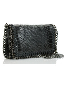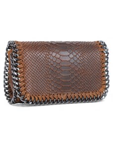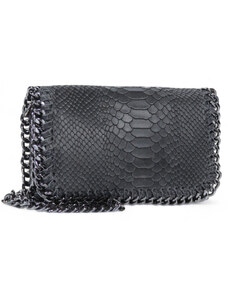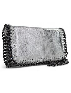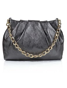 Passaggio Leather Τσάντα Ώμου-Χιαστί Με Αλυσίδα Από Γνήσιο Δέρμα (Italy-Gunmetal)