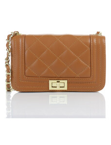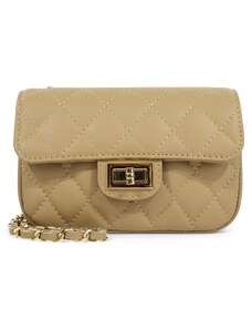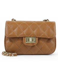 Passaggio Leather Δερμάτινη Τσάντα Καπιτονέ Ώμου-Χιαστί (Italy-Σκούρο Μπεζ)