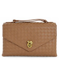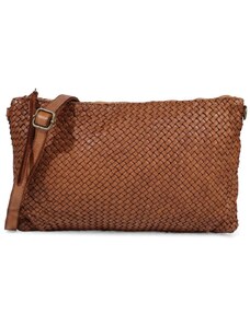 Passaggio Leather Χειροποίητη Πλεκτή Τσάντα Χειρός-Ώμου-χιαστί Από Γνήσιο Δέρμα (Ταμπά)