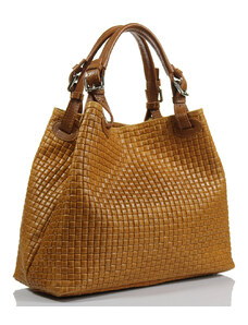 Passaggio Leather Shopping Bag Τσάντα Ώμου Από Γνήσιο Καστόρι Δέρμα Μουσταρδί(Μεγάλη)