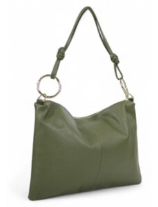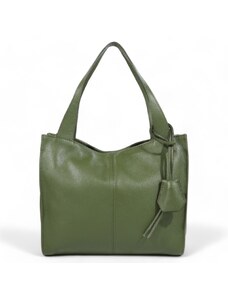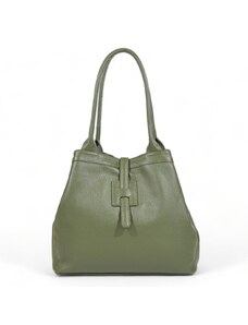 Passaggio Leather Shopping Τσάντα Ώμου Από Γνήσιο Καστόρι Δέρμα (Σμαραγδί -Italy)