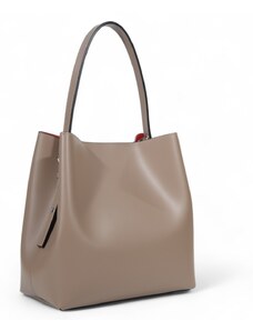 Passaggio Leather Shopping Τσάντα Ώμου Από Γνήσιο Καστόρι Δέρμα (Taupe-Σκούρο Μπεζ-Italy)
