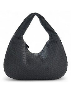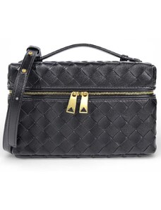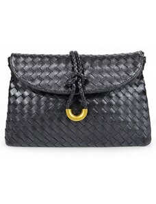 Passaggio Leather Γυναικείο δερμάτινο τσαντάκι ώμου & χιαστί με πλέξη Μαύρο
