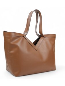 Passaggio Leather Shopping Τσάντα Από Γνήσιο Καστόρι Δέρμα Cappuccino(Μεγάλη)