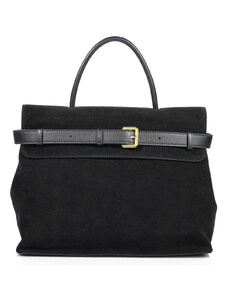 Passaggio Leather Elegant Γυναικεία Τσάντα Χειρός Suede Δερμάτινη(Μαύρο)