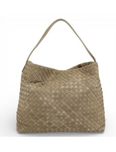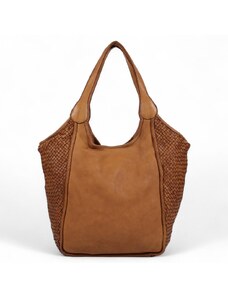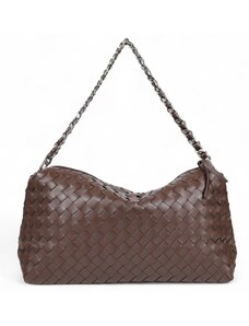 Passaggio Leather Χειροποίητη Πλεκτή Τσάντα Χειρός-Ώμου Από Γνήσιο Δέρμα (Ταμπά)