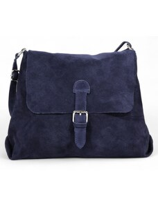 Passaggio Leather Messenger Τσάντα Ώμου-Χιαστί Από Γνήσιο Καστόρι Δέρμα Μεγάλη (Μπλε)