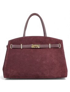 Passaggio Leather Ιταλική Δερμάτινη Τσάντα Χειρός από Suede σε Χρώμα (Μπορντό)