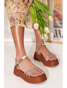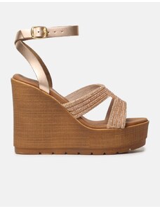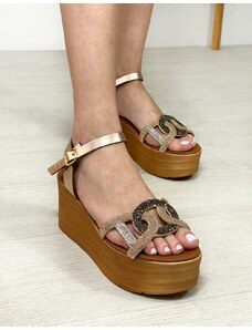 INSHOES LEATHER Δερμάτινες πλατφόρμες Ελληνικής κατασκευής με μπαρέτα strass Χαλκός