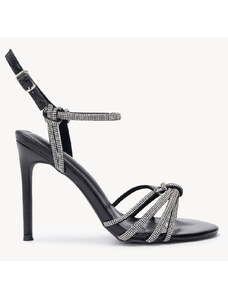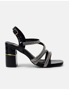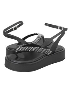 INSHOES Πέδιλα Ελληνικής κατασκευής με μπαρέτα και λουράκια από strass Μαύρο