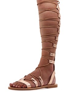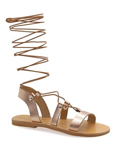 Emmanuela - handcrafted for you Σανδάλια μονομάχου με κορδόνια "Ιοκάστη" - Ροζ χρυσό