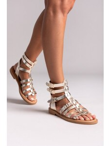 Emmanuela - handcrafted for you Σανδάλια μονομάχου με φερμουάρ "Βρισηίδα" - Χρυσό