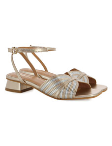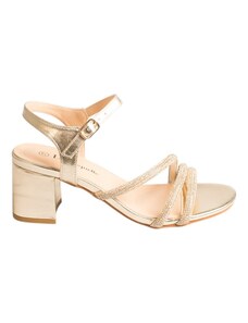BOTEGGA 22 Block Heel Sandals Rhinestone Straps - BOT15 - Gold Metallic