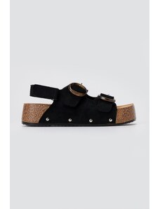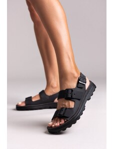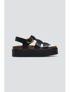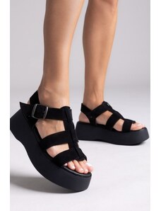 FANTASY SANDALS Leather Flatform Sandals Buckles - S9046 - Black