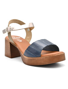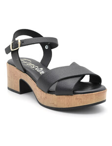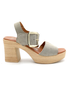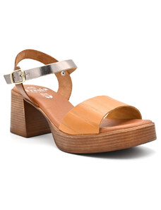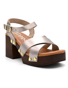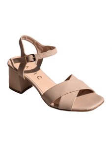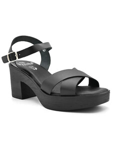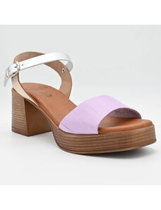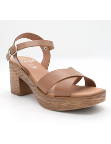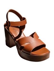 Γυναικεία δερμάτινα πέδιλα με τακούνι FRESIA