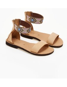 Estil Leather Sandals with Beaded Strap - 103 - Natural