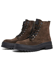 JACK & JONES Μπότες με κορδόνια 'Albany' σκούρο καφέ