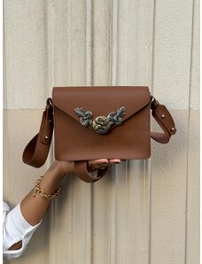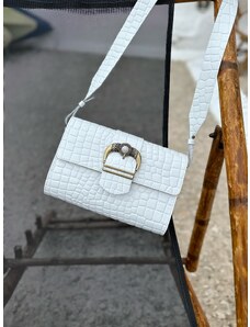 Χειροποίητη Λευκή Δερμάτινη Τσάντα Χιαστί με Μπρονζέ Αγκράφες – Boho Elegance | Christina Christi