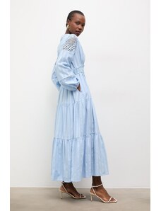 Στον πολιτικό γάμο, το στυλ παραμένει κομψό αλλά δεν χρειάζεται να είναι “επίσημο” με την κλασική έννοια. Τα πιο κατάλληλα σχέδια είναι πάλι μίντι ή κάτω από το γόνατο, σε Α ή ίσια γραμμή, με soft υφές όπως κρεπ, σατέν ή jersey. Οι αποχρώσεις blush, navy, ivory ή dusty blue είναι πάντα ασφαλείς, ενώ η διακριτική δαντέλα ή τα ελαφριά layers προσθέτουν ενδιαφέρον χωρίς υπερβολή. Είναι η στιγμή να δείξεις προσωπικότητα — χωρίς να κάνεις “επίδειξη”.