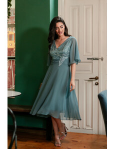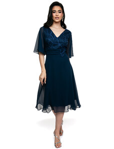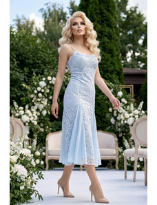 Parizianista Γυναικείο Φόρεμα Midi Με Δαντέλα & Σιφόν Λεπτομέρειες - Γαλάζιο - 006001