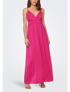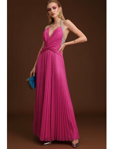 Parizianista φόρεμα maxi σατινέ ντραπέ στο επάνω μέρος, ανοιχτή πλάτη με στρας περιμετρικά & ελαφρύ πλισέ στο κάτω μέρος - Φούξια - 029014