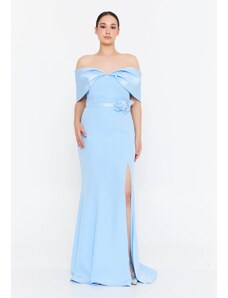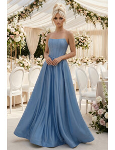 Parizianista Maxi Strapless Φόρεμα με Corset Μπούστο – Princess Satin Dress - Σιέλ - 079014