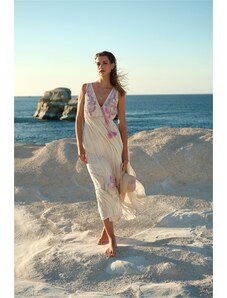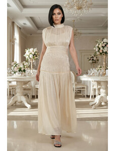 Parizianista Γυναικείο Φόρεμα Maxi Ημίζιβαγκο Με Σούρες & Άνοιγμα Πλάτης - Φυστικί - 061001