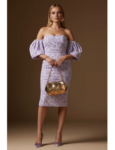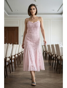 Parizianista Γυναικείο Φόρεμα Midi Με Δαντέλα & Σιφόν Λεπτομέρειες - Ροζ - 018001