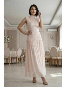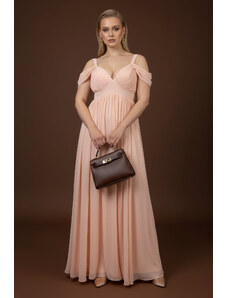 Parizianista Γυναικείο Φόρεμα Maxi Τούλινο Με Κορσέ & Βολάν - Σομόν - 040014