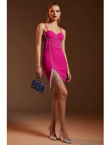 Parizianista φόρεμα mini τιράντα με σκίσιμο & λεπτομέρειες στρας - Φούξια - 029007