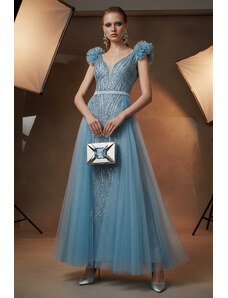 Parizianista φόρεμα αστραφτερό maxi με τούλι & ενίσχυση στο στήθος - Γαλάζιο - 006005