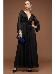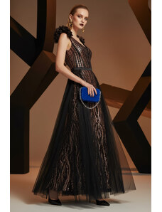 Parizianista φόρεμα αστραφτερό maxi με τούλι & ενίσχυση στο στήθος - Μαύρο - 002005